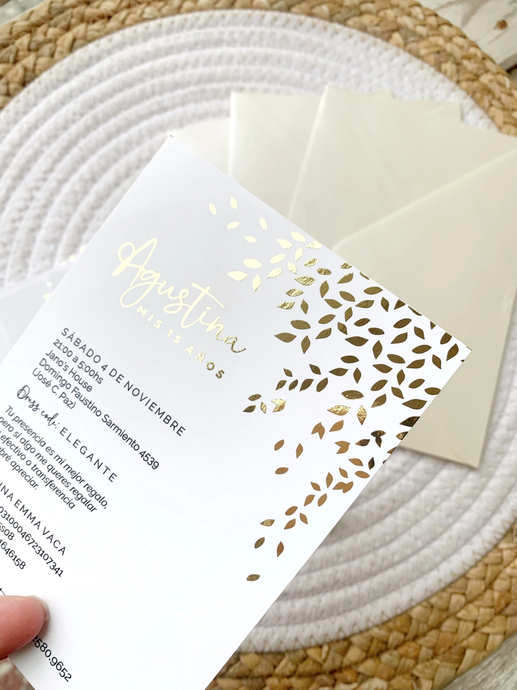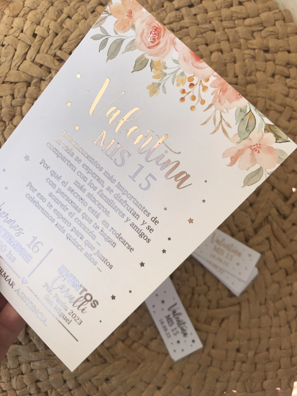 Invitaciones para todo tipo de eventos, realizada en papel tarjeta 300 grs + detalle Stamping