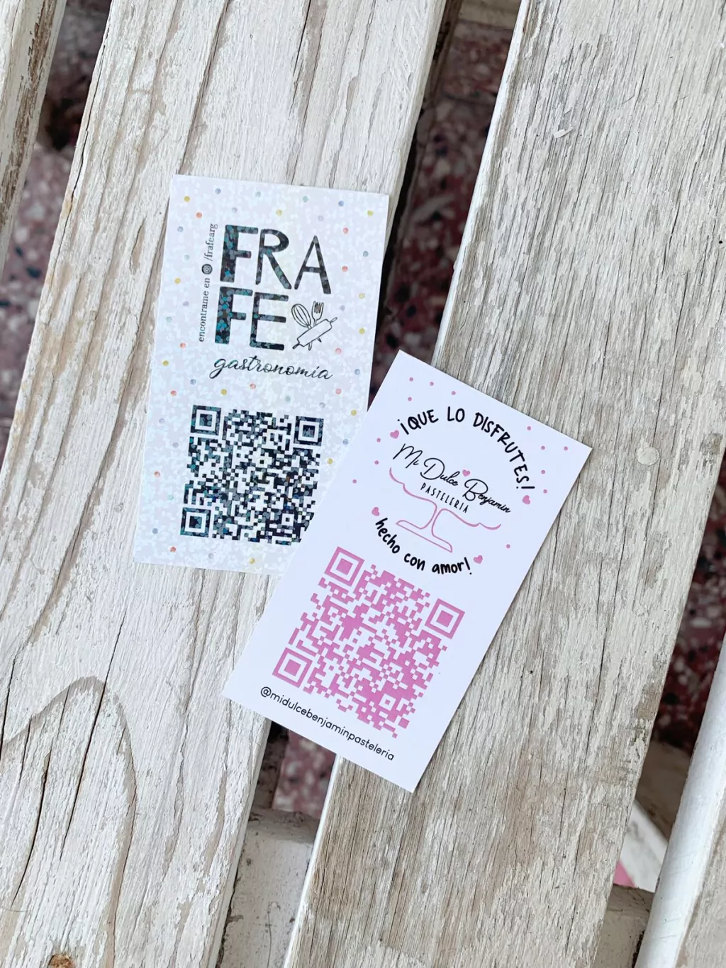 El diseño de la tarjeta incluye un diseño sencillo ya que no hay espacio para muchos detalles mas que el LOGO y QR (el QR que puede ser instagram, What App o de un link a donde quisieras que tus clientes ingresen), cada trabajo es personalizado. El tema el diseño se charla una vez realizada la compra, deben enviar por mail o whats app todos los archivos que crean necesarios para armar el diseño.